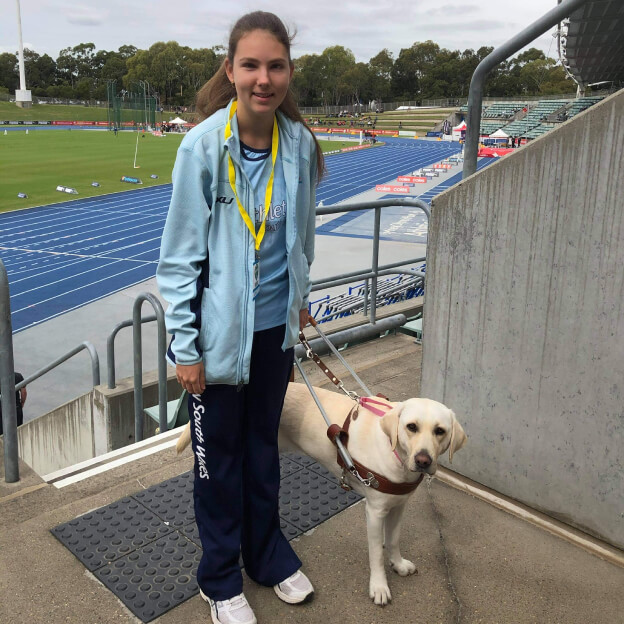 Karlee first came to Guide Dogs NSW/ACT when she was nine years old and just starting to use a white cane. At the age of 11, while at primary school, Karlee began participating in cross-country running and athletics, and started to progress through the ranks, qualifying to compete in national meets.
