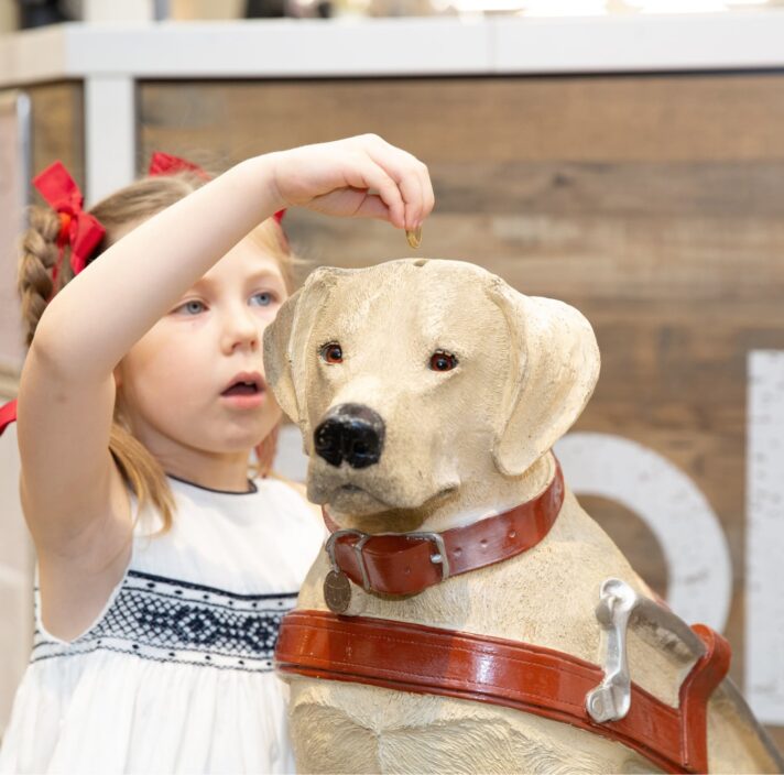 At 83cm tall this Donation Dog is ideal for high traffic areas in supermarkets, shopping centres, schools and clubs. They are also a prime attraction and pastime for children who like to give them a pat and pop in some coins while their parents are at the checkout – building a long-lasting relationship with Guide Dogs.