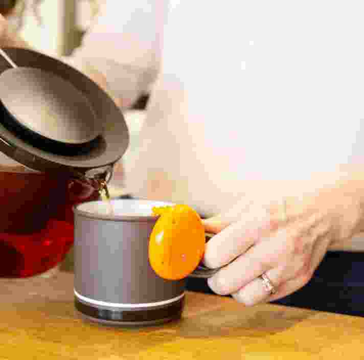 A close up shot of a person making a cup of tea.